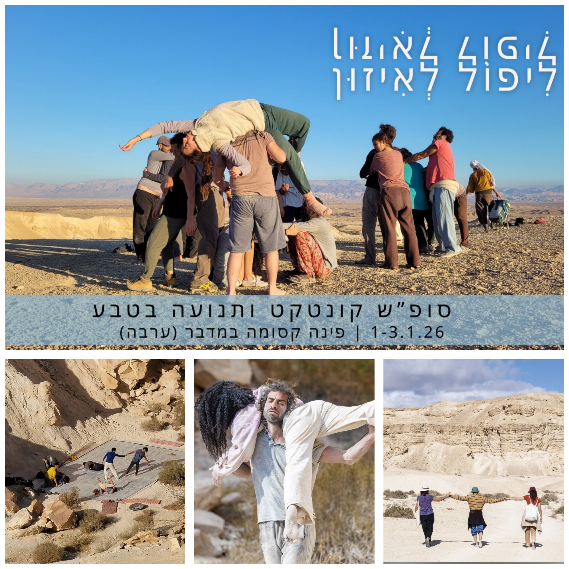 בואו לפתוח את השנה בריקוד במדבר 🌄 שלושה ימים של תנועה, קונטקט אימפרוביזציה ומפגשי גוף ונפש   הערבה קוראת לנו – ליפול לאיזון סטודיו מוקף...